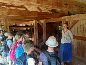 Čtvrťáky neodradila noční bouřka, a tak jsme se v úterý 29.6. vydali pěšky na Vysoký Chlumec. Ve skanzenu jsme se seznámili s tím, jak se dříve na vesnicích žilo, viděli jsme práci vodního mlýna i katru. Učivo vlastivědy nám s těmito poznatky půjde po prázdninách jako po másle. třídní učitelky 4. ročníku