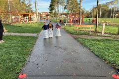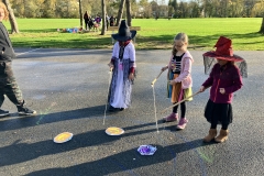 Úterý před podzimními prázdninami jsme se s 9.B rozhodli zpříjemnit našim prvňáčkům halloweenskou stezkou. Na Mrskošovně jsme připravili stanoviště se zábavnými úkoly, jako odměnu jsme vyrobili medaile a těšili se, jak se prvňáčci s disciplínami vypořádají.