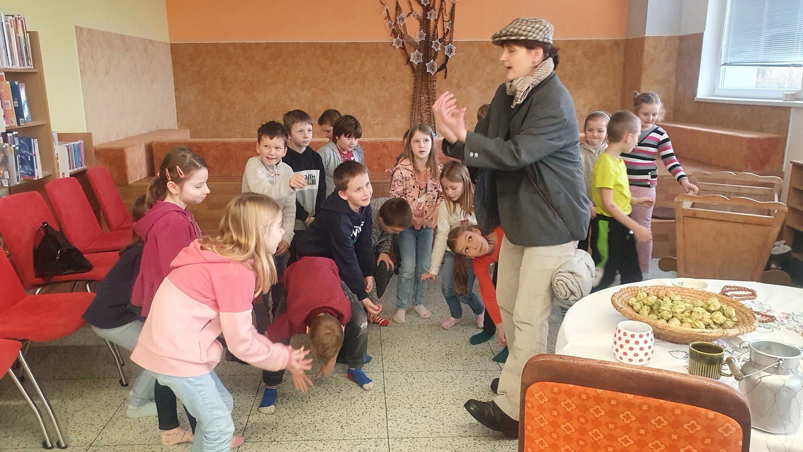 V lednu navštívili prvňáčci městskou knihovnu už potřetí. Tentokrát je čekal program věnovaný lidovým pohádkám. Děti se zaujetím sledovaly poutavé vypravování pohádkové babičky. L. Holanová