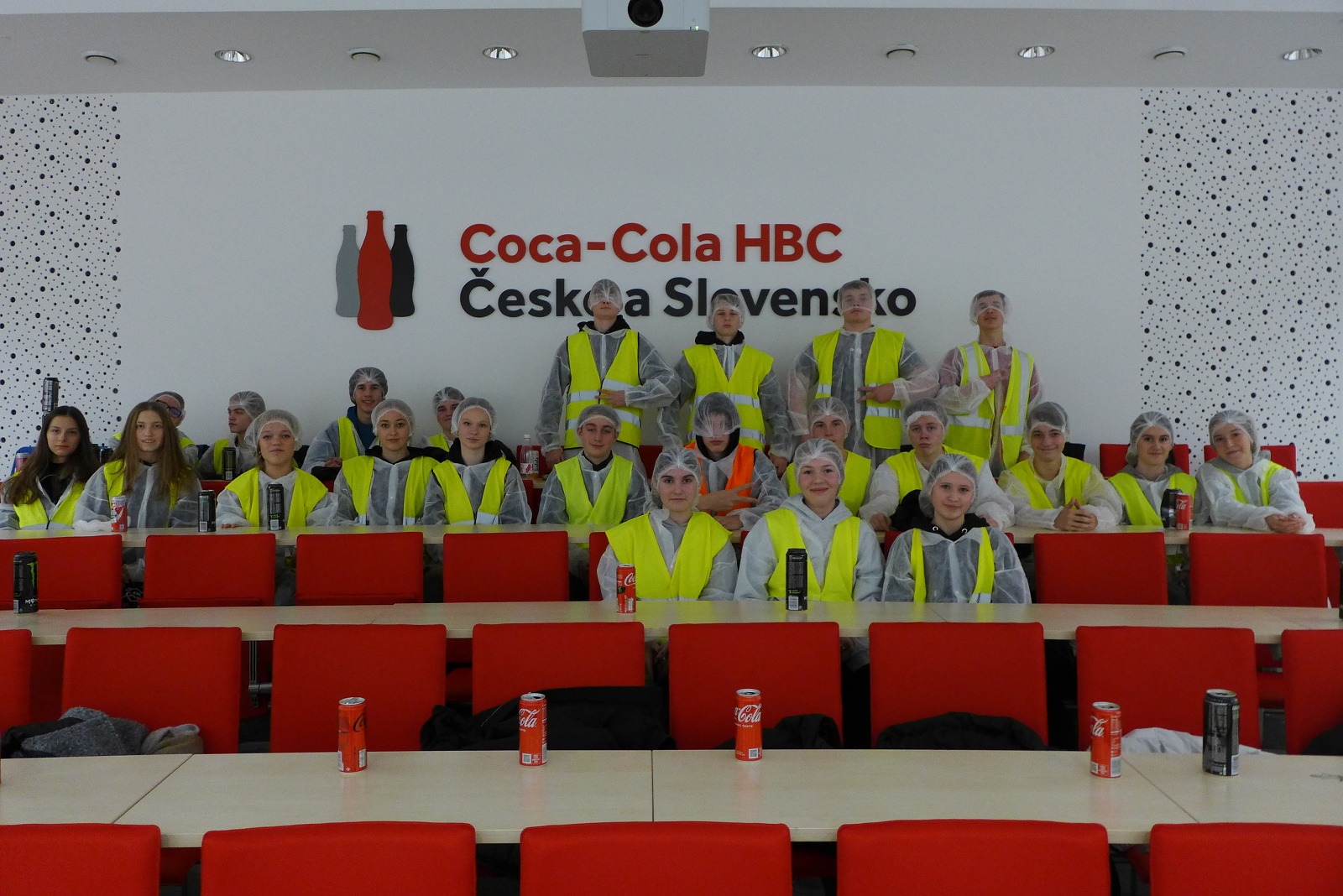 Ve čtvrtek 11. 1. se žáci 9. ročníků vypravili do pražské pobočky Coca – coly. Zde je ohromila velikost výrobního závodu, ale i sympatičtí zaměstnanci. Exkurze začala v kinosále, kde se děti dozvěděly spoustu informací a historii značky Coca – cola. Před vstupem do sálu si každý mohl vzít nápoj, který se v tomto závodu vyrábí (Coca – cola různé druhy, Fanta, Sprite, Cappy, Natura a další) – to všechny velmi potěšilo. Poté se žáci rozdělili na dvě skupiny a šlo se do výroby. Každý musel být speciálně oblečen, aby byla dodržena bezpečnostní a hygienická pravidla.