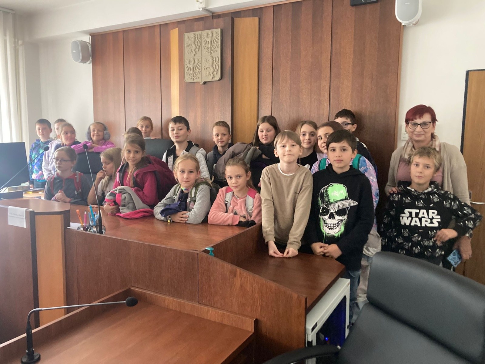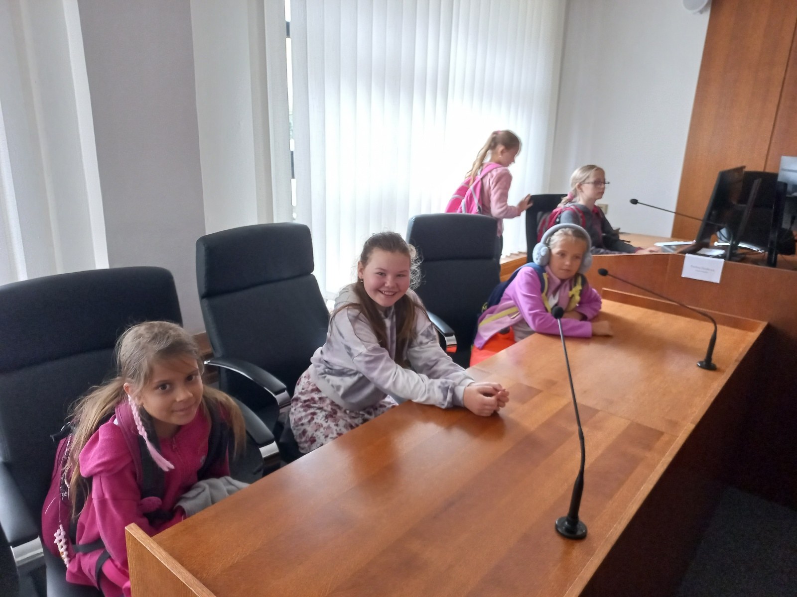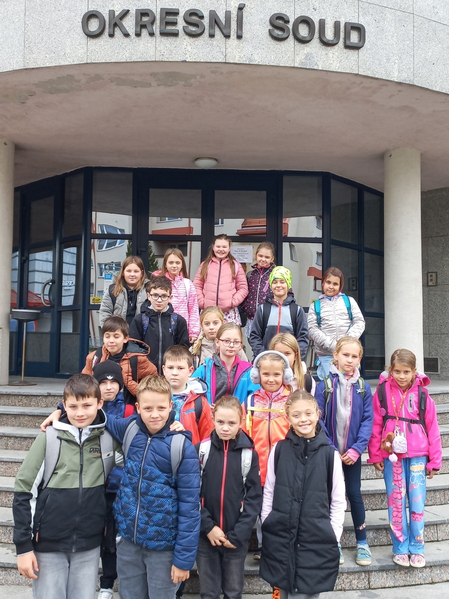 Dnes jsme absolvovali návštěvu okresního soudu. Po ukázce bezpečnostních opatření při vstupu do budovy jsme byli přítomni fiktivnímu líčení s mladistvým, který byl stíhán za kyberšikanu. Děti byly jako pěny a se zájmem sledovali dění v jednací síni. Po skončení jednání se mohly ptát paní soudkyně na vše, co je zajímalo. Získali jsme jedinečnou zkušenost a doufejme, že pokud se k soudu dostaneme někdy v budoucnu, budeme sedět pouze na místech pro veřejnost nebo na místě zaměstnanců. Příslušníky justiční stráže i další zaměstnance by justice uvítala – je jich prý málo!