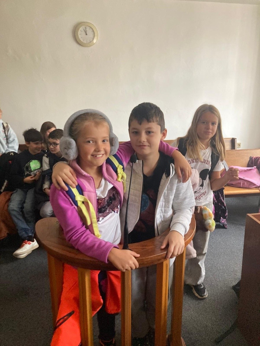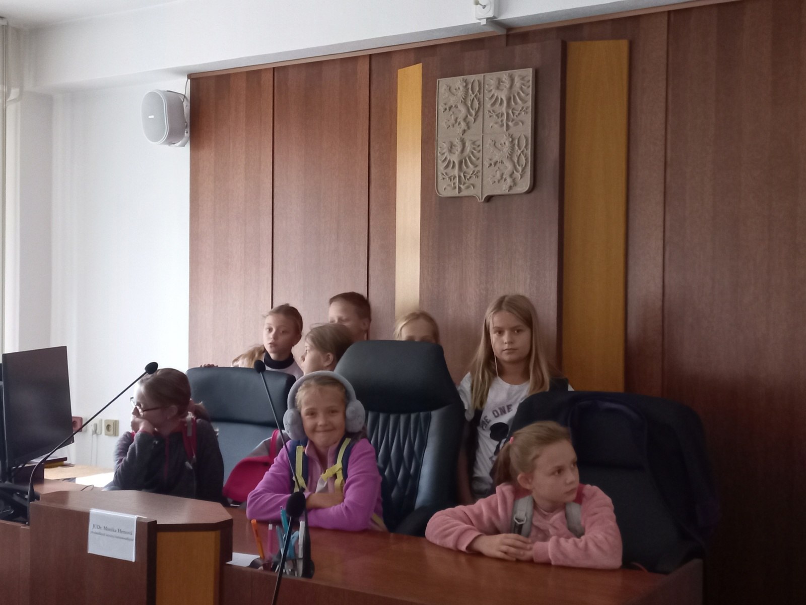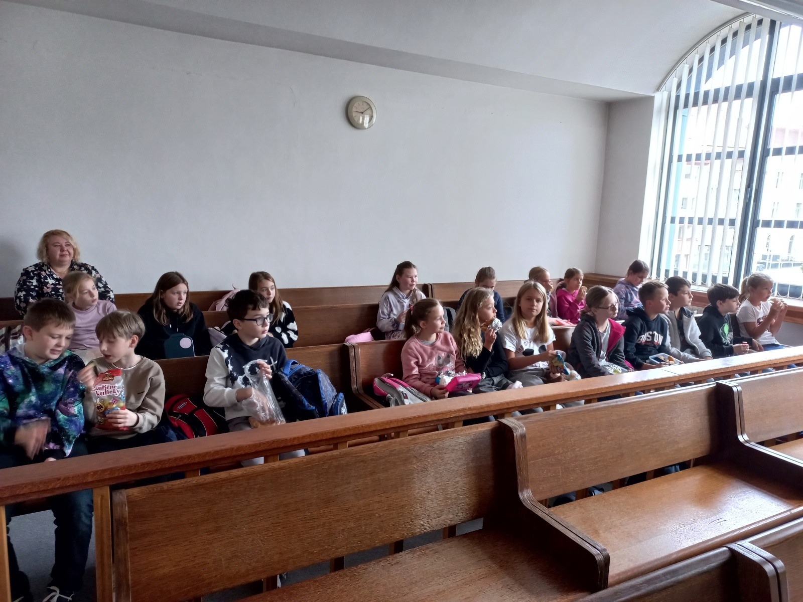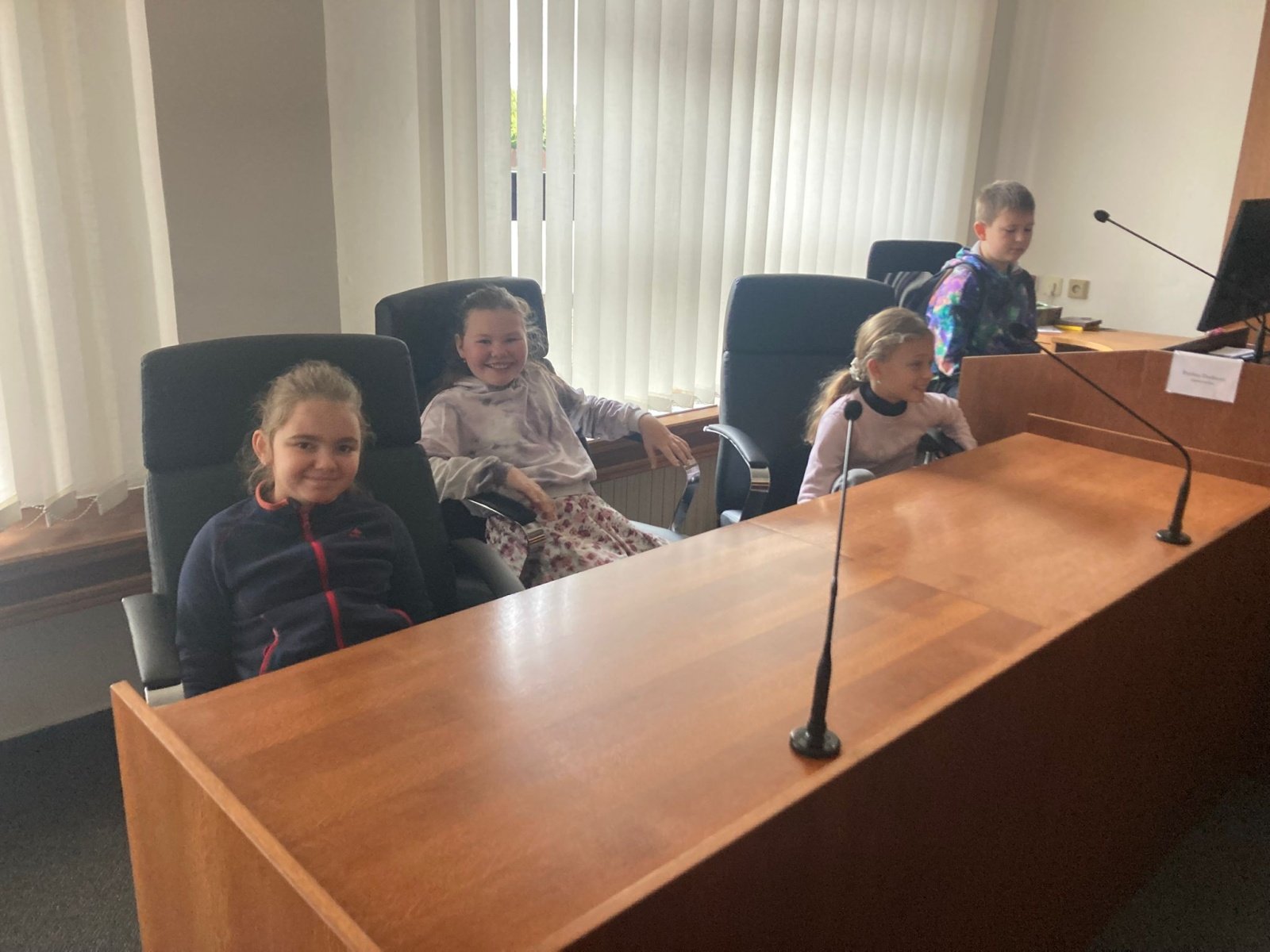 Dnes jsme absolvovali návštěvu okresního soudu. Po ukázce bezpečnostních opatření při vstupu do budovy jsme byli přítomni fiktivnímu líčení s mladistvým, který byl stíhán za kyberšikanu. Děti byly jako pěny a se zájmem sledovali dění v jednací síni. Po skončení jednání se mohly ptát paní soudkyně na vše, co je zajímalo. Získali jsme jedinečnou zkušenost a doufejme, že pokud se k soudu dostaneme někdy v budoucnu, budeme sedět pouze na místech pro veřejnost nebo na místě zaměstnanců. Příslušníky justiční stráže i další zaměstnance by justice uvítala – je jich prý málo!