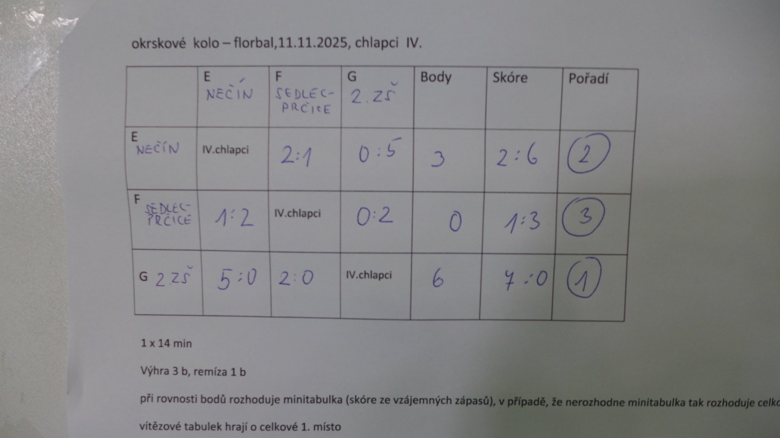 Dne 11.11. jsme na sedlčanském turnaji obsadili dvě druhá místa – dívky 6. – 7. třída a chlapci 8. – 9. třída. ◄12