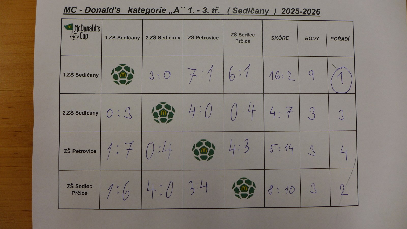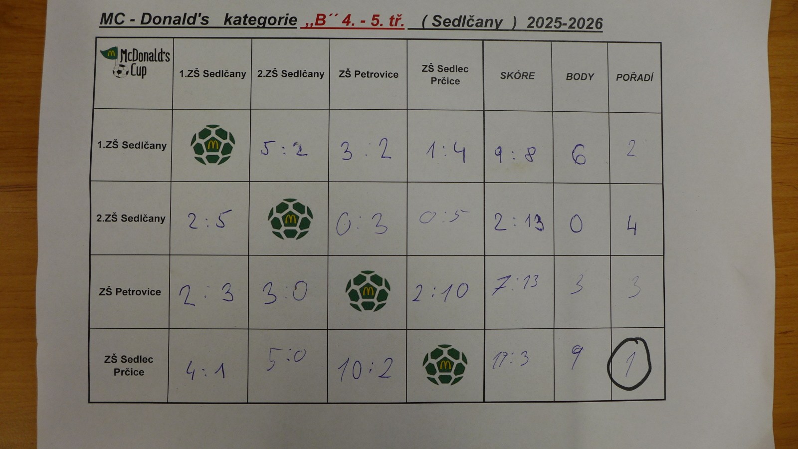 Dne 22.4. pořádala naše škola okrskové kolo na umělé trávě v Sedlčanech. Postup do okresního kola – 1. ZŠ Sedlčany (kat. 1. – 3. třída), ZŠ Sedlec Prčice (kat. 4. – 5. třída) foto A. Mašková ◄12